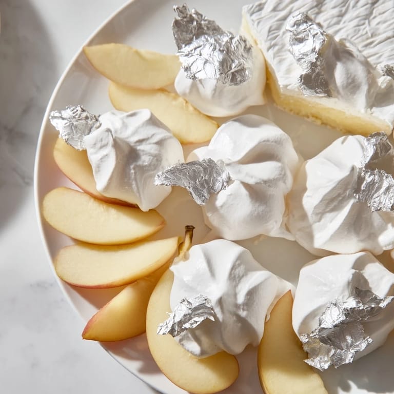 This board is genuinely forgiving if you understand one thing: everything works better cold. Your brie stays creamy, your peaches stay crisp, and your meringues maintain their delicate crunch. If you're assembling it more than an hour before serving, keep the components separated in the fridge and only arrange it when your guests are about to sit down. The 20-minute prep time is real only if you're using store-bought meringues, but the homemade version is mostly waiting around while the oven does the work.