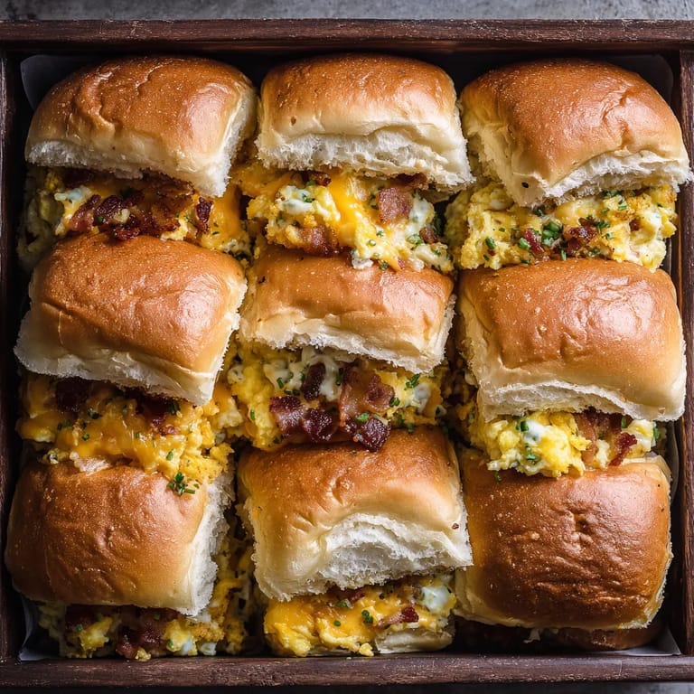 Save to Pinterest These breakfast sliders are a crowd-pleasing way to start your day with fluffy scrambled eggs, crispy bacon, and gooey cheddar all tucked into tender Hawaiian rolls brushed with savory ranch butter. I love serving these right out of the oven when everyone is still in their pajamas—the kitchen always smells amazing.