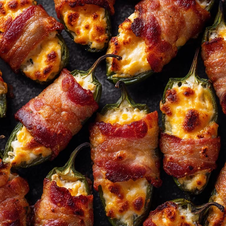 Save to Pinterest Smoky bacon-wrapped jalapeño poppers make any gathering instantly more fun. Spicy peppers get mellowed out by a creamy cheesy filling and everything becomes irresistible when wrapped in sizzling crisped bacon. This is the party appetizer I rely on most when friends swing by especially if we are grilling or watching the big game together.