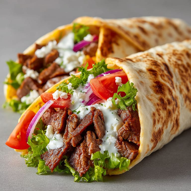 Save to Pinterest These beef and feta cream wraps are my go-to when I want something filling without feeling heavy They combine warm seasoned beef crisp veggies and a tangy feta yogurt sauce all bundled in a wholesome wrap Perfect for quick lunches or casual dinners everyone seems to love how fresh yet satisfying they are
