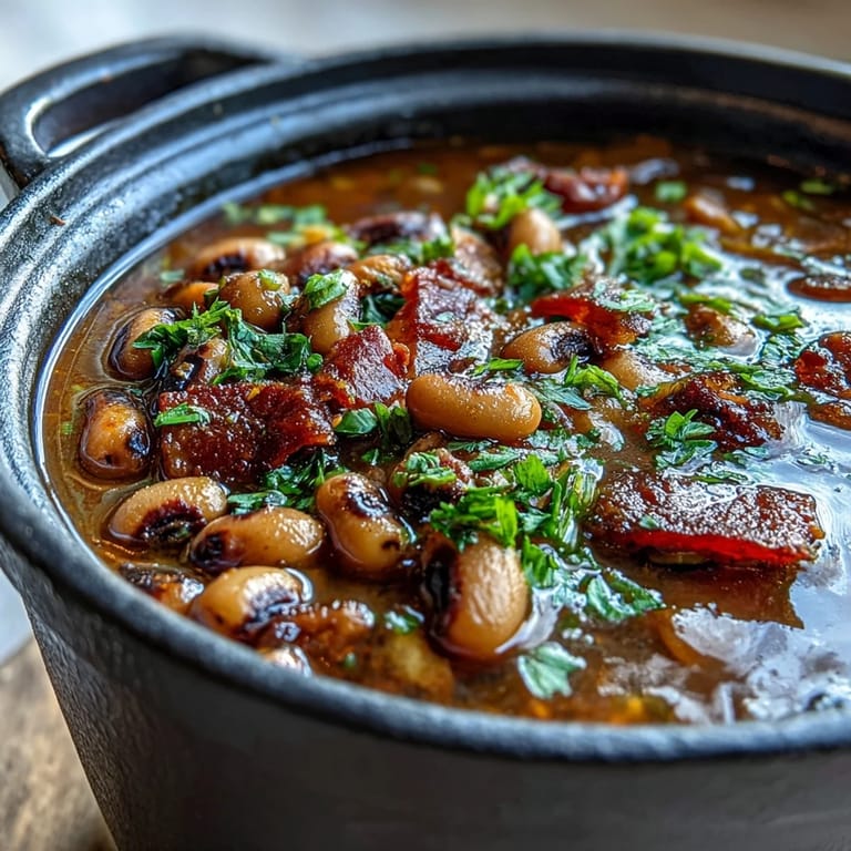 Save to Pinterest My uncle wouldn't stop talking about his Texas black-eyed peas during a humid July afternoon—the kind where you're stuck in a kitchen that feels like a sauna, but somehow that's exactly where you want to be. He described the smell of bacon fat hitting hot cast iron, how the jalapeños would soften and sweet, and the way Rotel tomatoes gave everything this unbeatable smoky-spicy backbone. I was skeptical until the first spoonful, when creamy peas and tender aromatics made me understand why he'd been going on about it for twenty years. Now I make it whenever I need to feed people and feel like I'm honoring something real and unpretentious.