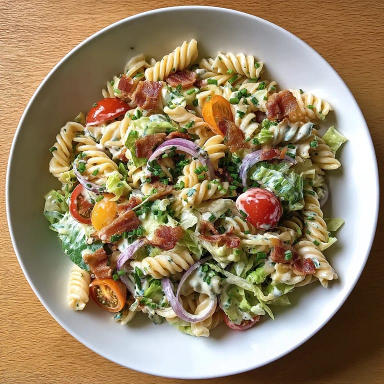 Save to Pinterest This BLT pasta salad takes all the familiar flavors of a bacon lettuce and tomato sandwich and transforms them into a refreshing, shareable dish perfect for summer barbecues or easy weeknight dinners. With creamy dressing, crunchy veggies, and plenty of smoky bacon, it is hearty enough as a main course and always a crowd-pleaser.