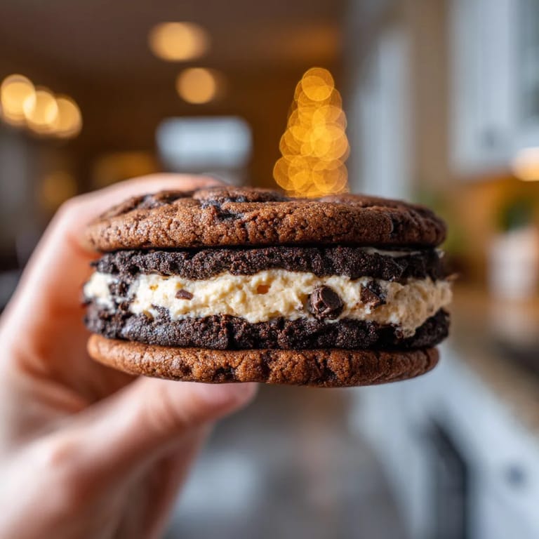 Save to Pinterest There is something magical about combining the deep fudginess of a brownie with the childhood nostalgia of raw cookie dough. These Brownie Cookie Dough Sandwich Cookies offer the best of both worlds in every bite. The chewy, crackled brownie cookies surround a creamy and chocolate-studded cookie dough filling, making them an irresistible dessert for sharing or special occasions. Whenever I bake a batch, the whole house smells like a chocolate factory and everyone hovers by the kitchen waiting for their turn to try one.