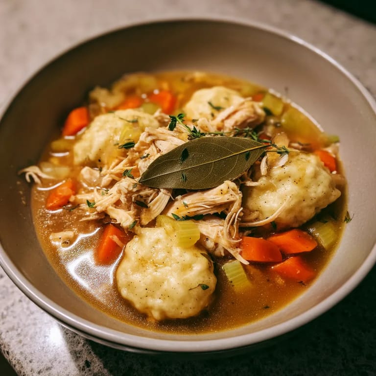 Save to Pinterest This hearty chicken and dumplings recipe transforms simple ingredients into the ultimate comfort food experience. The tender chicken swimming in rich broth alongside pillowy dumplings creates a satisfying meal that soothes the soul with every spoonful.