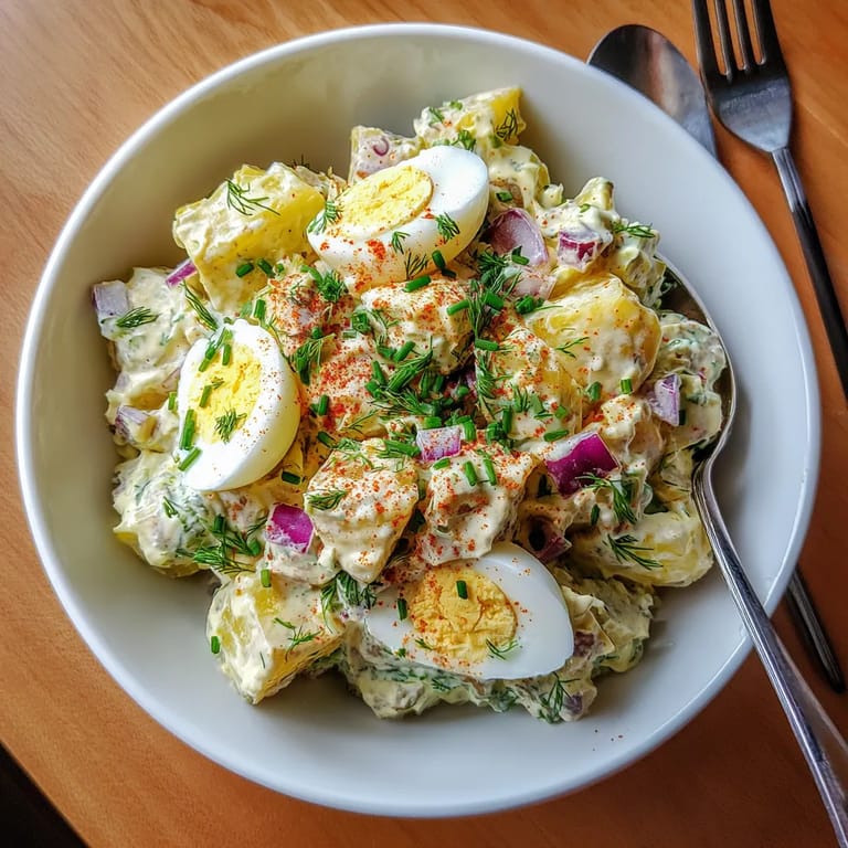 Fresh chives or parsley and a sprinkle of paprika add color and a fresh finish to the salad.