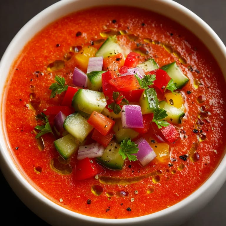 Save to Pinterest This classic gazpacho is a staple in my kitchen once the summer heat hits, bringing together the bold flavors of ripe tomatoes, crisp cucumbers, and fragrant olive oil. Each spoonful is a taste of sunshine and makes the hottest days feel instantly cooler. Blended and served cold, it is the ultimate no-cook soup for easy entertaining or just a quick, refreshing lunch.