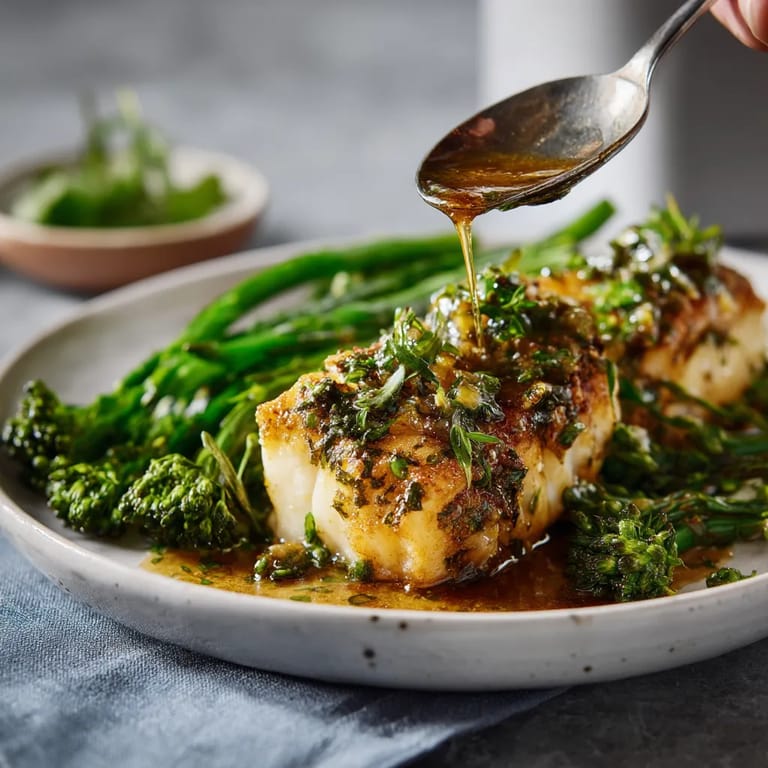 Save to Pinterest This flavorful cod dish brings together tender fish with a crisp herbed crust and a medley of glazed green vegetables. It is one of those French-inspired meals that feels both light and satisfying perfect for a weekday dinner or a celebratory table.