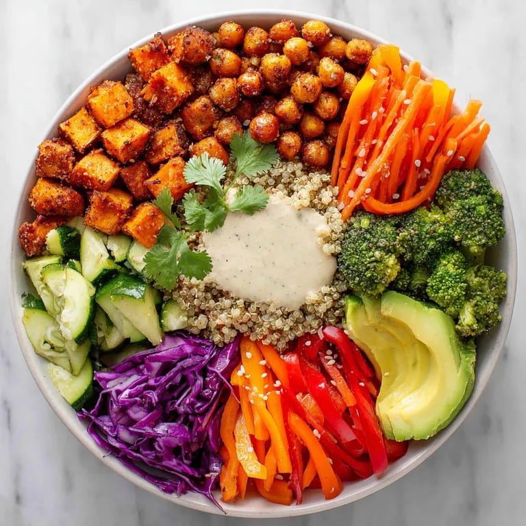 Save to Pinterest This nourishing Buddha Bowl comes together with vibrant roasted vegetables, spiced chickpeas, and fluffy quinoa, finished with creamy avocado and tangy tahini dressing. When I want a wholesome and colorful dinner that feels like a celebration in a bowl, this is my go to recipe.