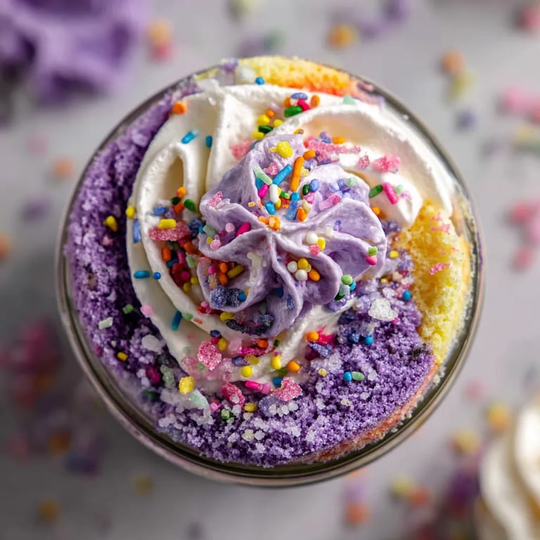 Save to Pinterest Chaos Cake Confetti Ube Jars are the kind of dessert that both kids and nostalgic grown-ups cannot resist. Imagine lush layers of soft ube sponge cake, vibrantly hued coconut whipped cream, joyful sprinkles, and the fizzy crackle of Pop Rocks—all tucked neatly into individual jars. They are easy to transport and deliver a rush of color and flavor with every bite, making them perfect for parties or a playful family night.
