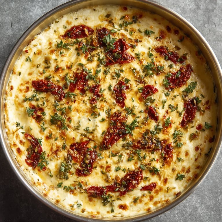 This style of hot dip has roots in classic American party foods which often combine comforting dairy and sharp flavors for easy sharing. The sun-dried tomatoes and Italian herbs give this version a Mediterranean twist that feels both familiar and special. Cheesy baked dips became especially popular in family cookbooks in the nineteen eighties and nineties for their ease and social appeal.