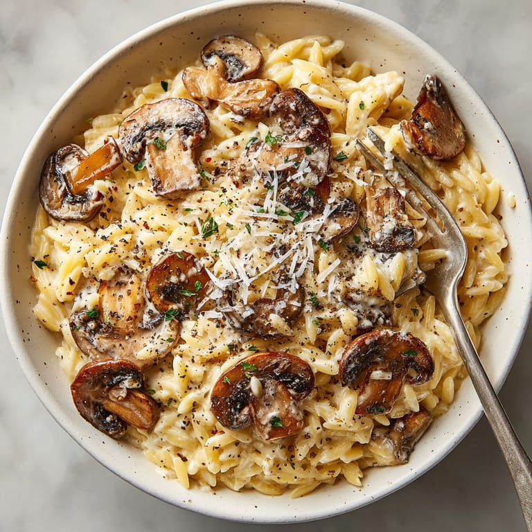 Save to Pinterest This creamy mushroom orzo skillet is the answer to those nights when you crave something deeply comforting yet easy to prepare. It comes together in one pan and wraps tender orzo and golden mushrooms in a velvety sauce for the ultimate cozy meal. Whether you are feeding a hungry family or just need five minutes to unwind with dinner, this dish delivers every time.
