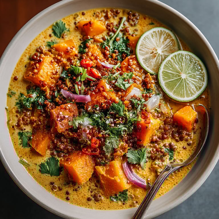 Save to Pinterest This creamy pumpkin and lentil curry is pure comfort in a bowl with velvety coconut sauce, tender cubes of sweet pumpkin, and protein-packed lentils gently simmered in warming spices. It is my go-to choice when I want something deeply satisfying and completely plant-based that even meat-lovers devour without a second thought.