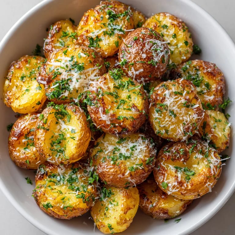 - Take out the potatoes and while still hot sprinkle with chopped parsley and Parmesan cheese if you like Serve right away while they are crackly and crisp