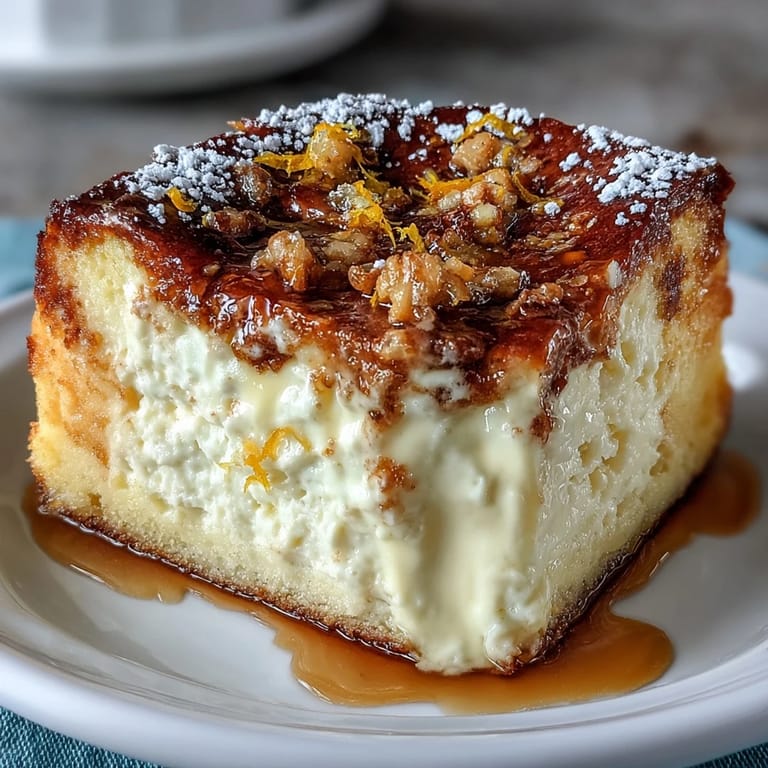 I made this for a small dinner party on a drizzly April evening, and one of my guests—someone who claims to never eat dessert—asked for seconds. The way the powdered sugar dusted across the pale yellow filling, how it caught the light on the plate, it felt festive without screaming for attention. That night reminded me that the best meals happen when you cook with intention but without pressure, letting the ingredients speak for themselves.