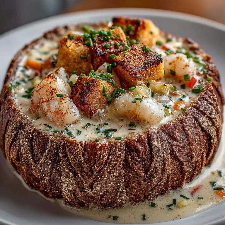 Save to Pinterest This fisherman’s chowder brings together flaky fish, sweet shrimp, and garden vegetables in a creamy base, all nestled inside a cozy bread bowl with a cable-knit pattern. It transforms an everyday chowder into a showstopping centerpiece for family dinners or holiday gatherings. Every spoonful delivers comfort and seaside nostalgia, especially when you tear off a bit of the warm bread to soak up the rich broth.