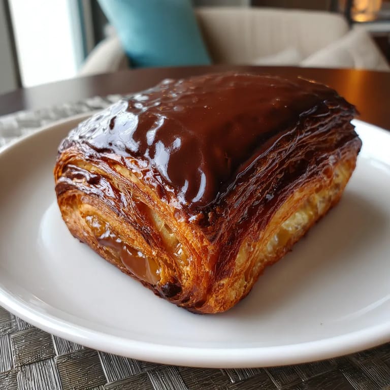 Save to Pinterest This giant pain au chocolat with caramel center is a showstopper for special brunches and celebrations A golden flaky pastry envelops a gooey milk chocolate caramel bar and everything gets finished with a glossy chocolate glaze This recipe makes for a dramatic centerpiece that delights kids and impresses grownups every time