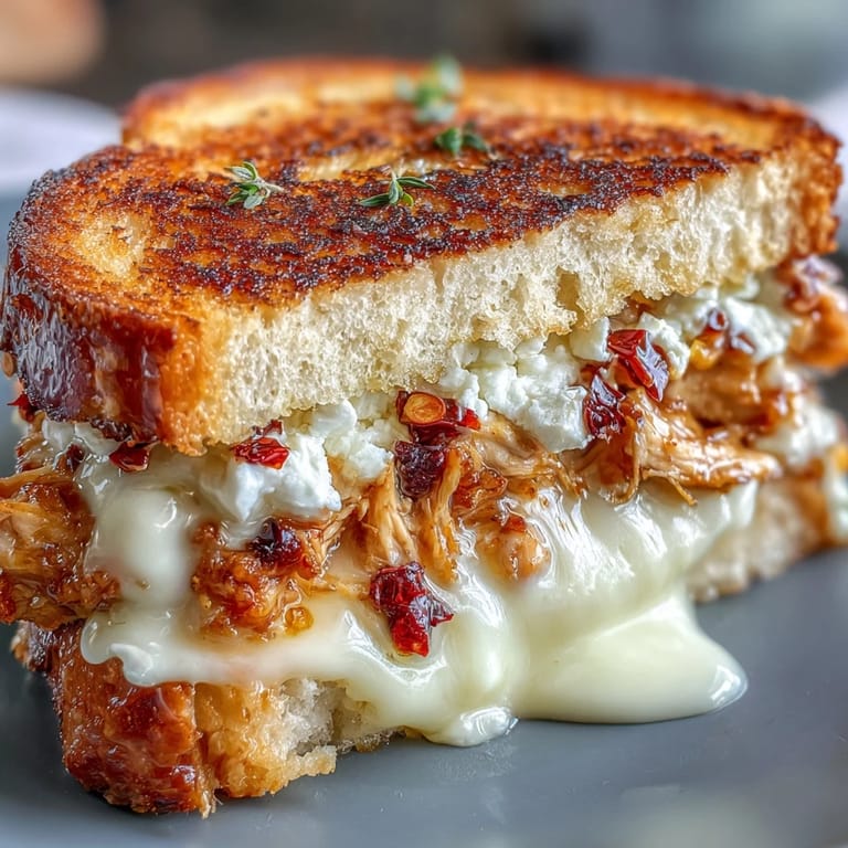 Save to Pinterest I was standing at the counter one rainy Tuesday, staring at leftover chicken and a jar of hot honey someone had brought me from a food market. I had goat cheese in the fridge, good bread, and zero energy for anything complicated. What came out of that skillet twenty minutes later made me actually laugh out loud, it was that good. The creamy tang of goat cheese against the sweet heat of honey, all wrapped in crispy, buttery sourdough, felt like a small rebellion against boring lunches. I've been making it ever since, sometimes for myself, sometimes to impress people who think grilled cheese is just for kids.