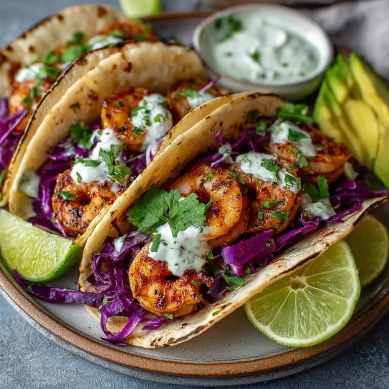 Shrimp tacos have roots in coastal Mexican cuisine where fresh seafood is plentiful and tortillas are a staple. The addition of a cooling yogurt sauce brings a modern twist inspired by Baja style fish tacos where creamy toppings balance spicy grilled proteins. Every time I make these I think of the colorful street food stands along the Pacific coast.