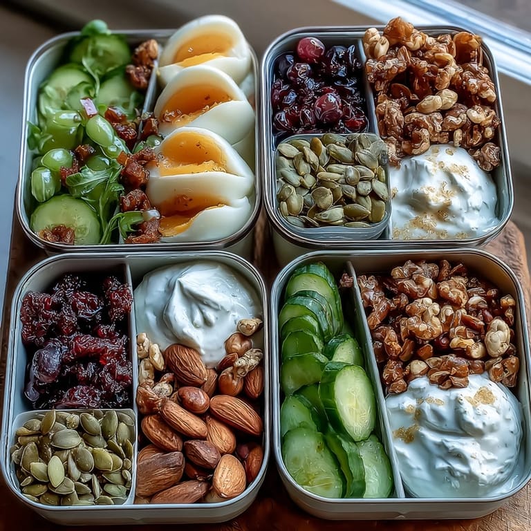Save to Pinterest The sharp pop of eggshells cracking in my quiet kitchen always signals the start of the week ahead. Lining up my colorful bento boxes, I find it oddly satisfying to fill each one with layers of creamy yogurt, jewel-bright berries, and a shower of nuts. Sometimes my cat circles the counter, hoping a crumb of nut will stray his way. The ritual soothes me, especially knowing I’ll have snacks that can take me from work to the gym without a hungry pause. These high protein snack boxes have become a little breakfast and snack security blanket in my daily routine.