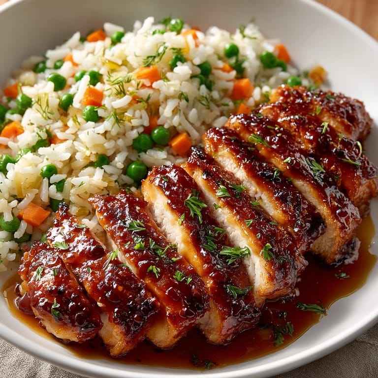 Save to Pinterest Honey BBQ Chicken and Pilaf Express is a go-to dinner in my home when I want something both easy and crowd-pleasing. The sticky sweet chicken comes out perfectly glazed thanks to a honey barbecue sauce with just a hint of smoky spice, while the aromatic rice pilaf can be made while the chicken bakes. It is a meal that feels special but comes together fast enough for a busy weeknight.