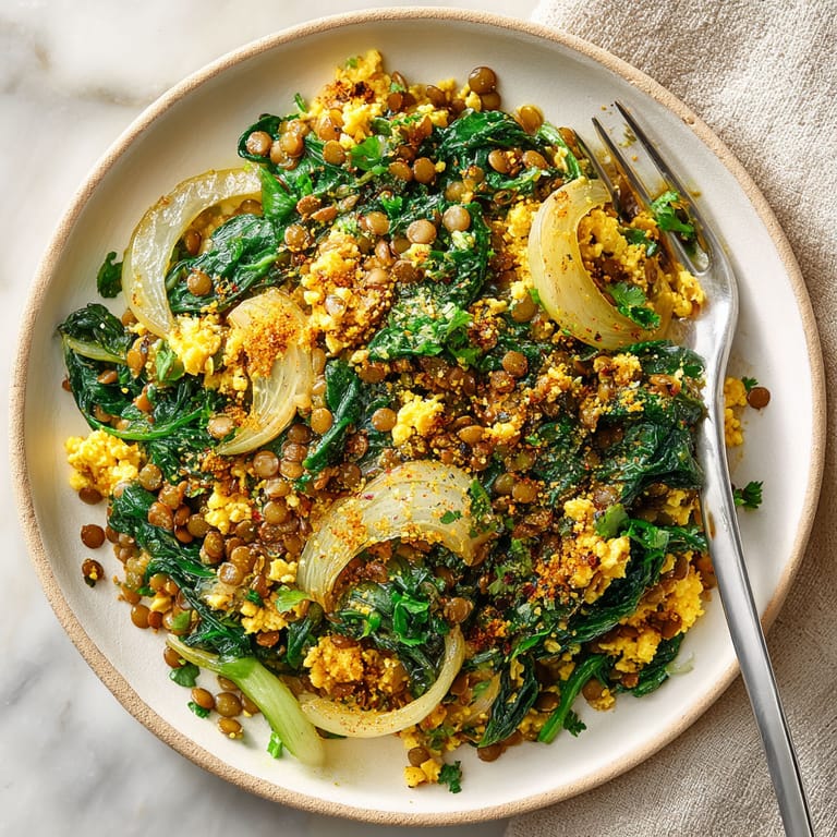 Save to Pinterest Lentil and Spinach Breakfast Scramble is perfect for mornings when you want a hearty breakfast that packs in both plant protein and fiber. This is my go-to vegan scramble whenever I crave something savory and sustaining but do not want to spend much time in the kitchen. The combination of lentils and spinach makes it both filling and vibrant, giving you energy to start your day right.