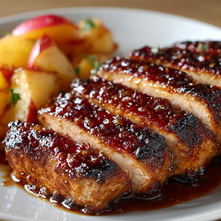 Save to Pinterest A juicy pork tenderloin coated in maple-Dijon glaze and paired with roasted apples always delivers crowd-pleasing comfort. This dish channels both sweet and tangy elements with every bite making it equally suited for a family dinner or a special occasion.