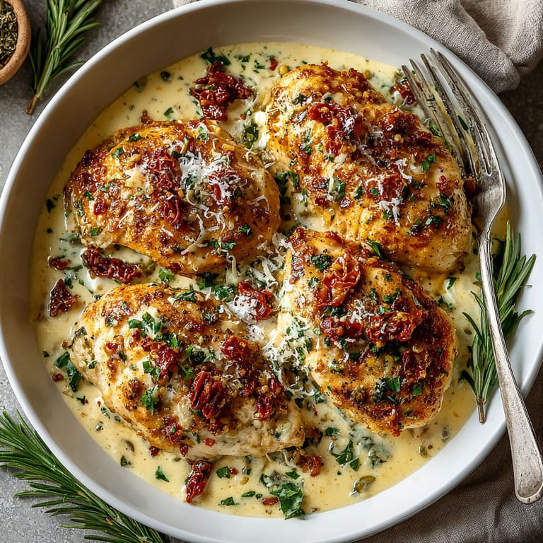 Swap half and half for heavy cream to lighten the sauce. Use boneless skinless chicken thighs for extra juicy meat, just adjust simmering time as needed. Fresh spinach or sautéed mushrooms can be stirred in with the sun-dried tomatoes for a boost of extra vegetables.