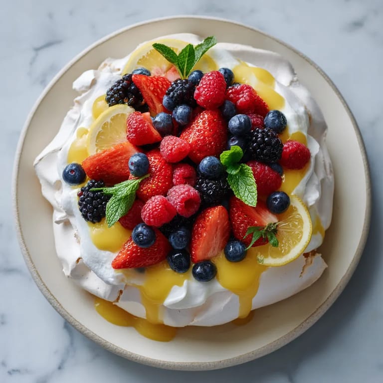 Save to Pinterest Mixed Berry Pavlova with Lemon Curd Cream brings together crisp airy meringue gentle whipped cream vibrant berries and a burst of tangy lemon curd. This showstopper transforms simple ingredients into a dessert that always wows at parties and gatherings