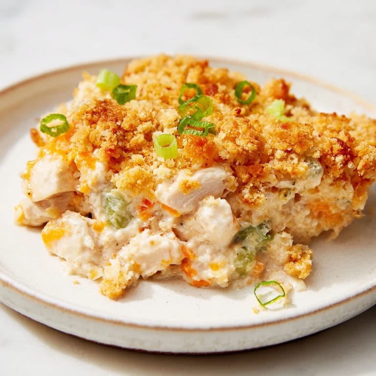 - Bake for 30–35 minutes or until topping is golden brown and casserole is bubbly.