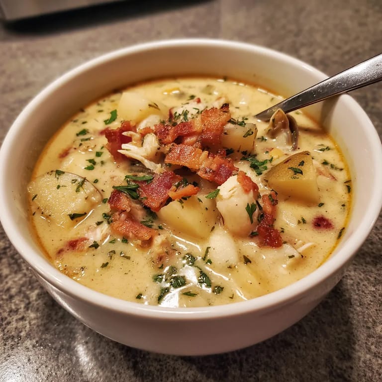 Save to Pinterest My favorite aspect of this recipe is the bacon. I discovered through countless tests that cooking the bacon first rather than adding it at the end creates a flavor foundation that permeates the entire chowder. One memorable Christmas Eve, this chowder saved dinner when our planned seafood feast fell through due to a snowstorm preventing delivery.