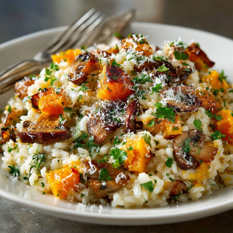 Save to Pinterest This creamy one-pan mushroom harvest risotto brings out autumn’s coziest flavors in just about 50 minutes from start to finish. Packed with earthy mushrooms, tender butternut squash, and a generous shower of Parmesan, this risotto is a vegetarian comfort dish that always draws cheers at my dinner table.