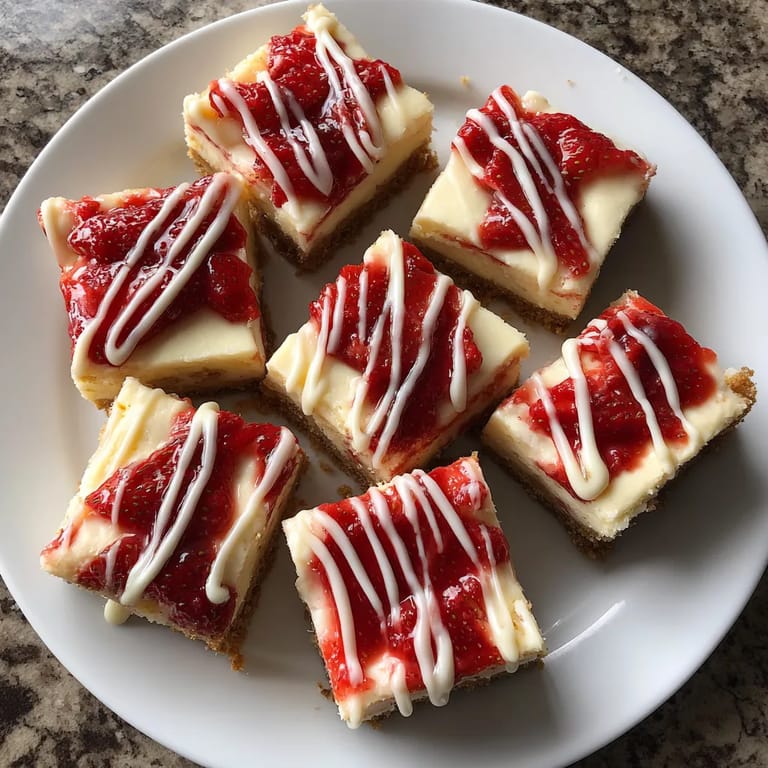 Save to Pinterest Creamy Philadelphia cheesecake bars are the answer when you crave that classic tangy rich flavor in an easy bar form. There is no fuss with springform pans or water baths here. A golden graham cracker crust, satiny cheesecake layer, bright strawberry topping and a dramatic drizzle of white chocolate combine for an irresistible dessert perfect for celebrations or just a sweet afternoon pick-me-up.