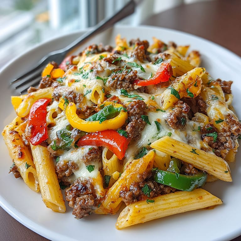 This dish borrows all the best elements of a Philly cheesesteak—the onions, peppers, beef, and cheese—and transforms them into an easy casserole. It is a clever American spin on two classic comfort foods: cheesesteaks and pasta bakes. Perfect for potlucks or when you crave takeout with a homemade twist.