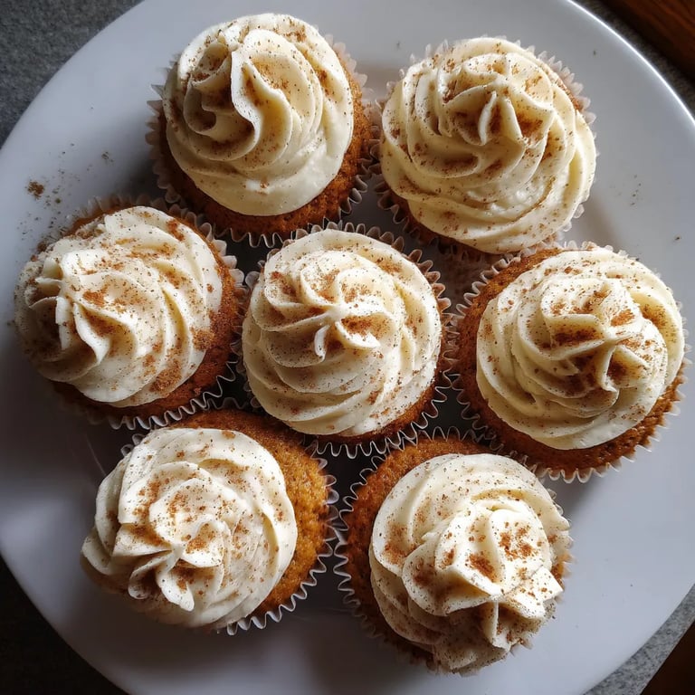 These cupcakes shine when served slightly chilled but not cold straight from the refrigerator. Pair them with a hot cup of coffee or spiced apple cider for the ultimate fall treat. For a dinner party dessert place each cupcake on a small plate with a sprinkle of cinnamon and a few candied pecans alongside. They also make a beautiful addition to a fall dessert table when displayed on a tiered stand with other seasonal treats like apple crisp or maple cookies.