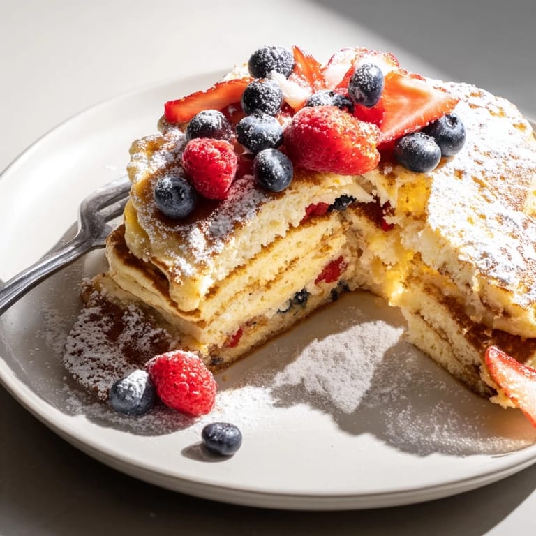 Save to Pinterest Fluffy, citrus-scented pancakes enriched with creamy ricotta and studded with fresh berries, perfect for a bright and indulgent breakfast.