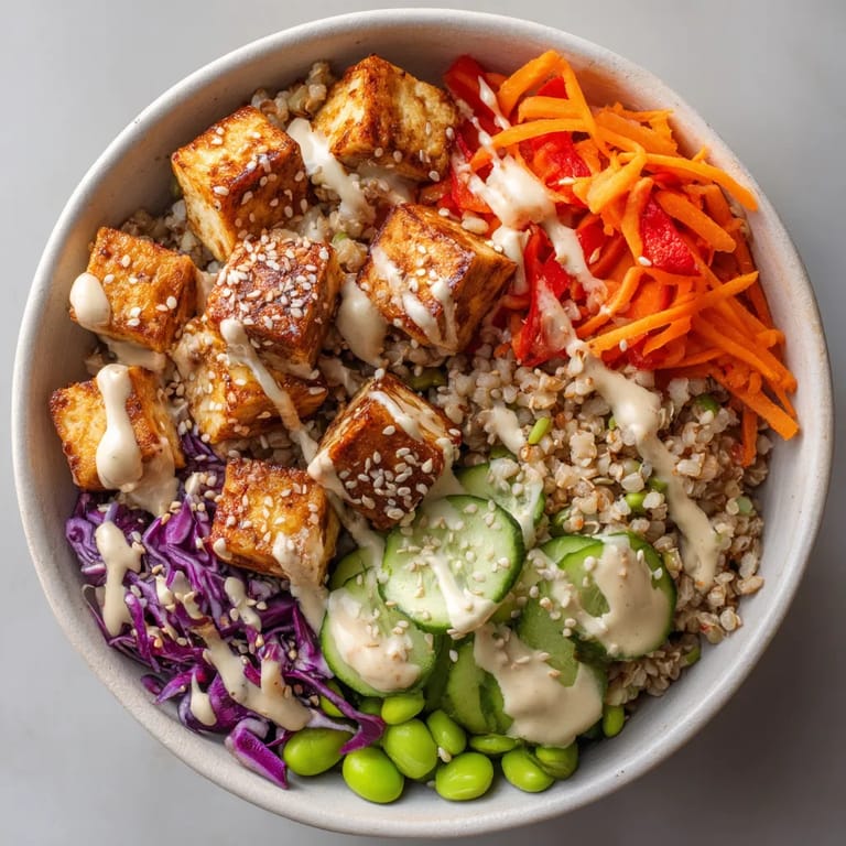 Save to Pinterest Every time I toss cubed tofu with smoked paprika my kitchen smells incredible. The dressing is my secret weapon for transforming any grain bowl into something craveable and my nephew now requests extra to save for salads.