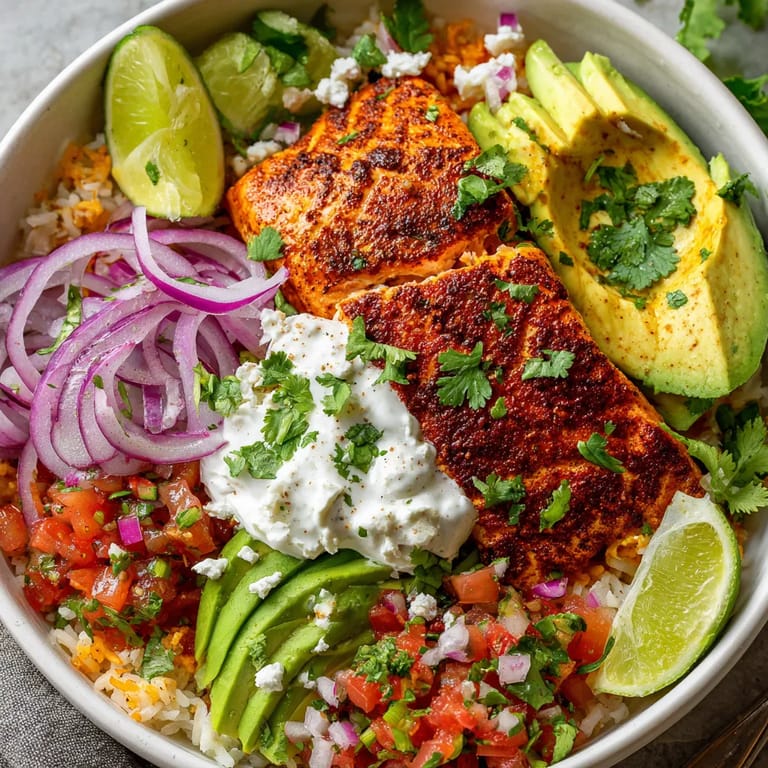 This dish mixes traditional Mexican flavors like cumin and chili powder with fresh Pacific salmon. The sofrito rice base brings Latin American inspiration while the bowl style speaks to modern fusion food. For me it is a comfort dish that feels new every time I add a different salsa.