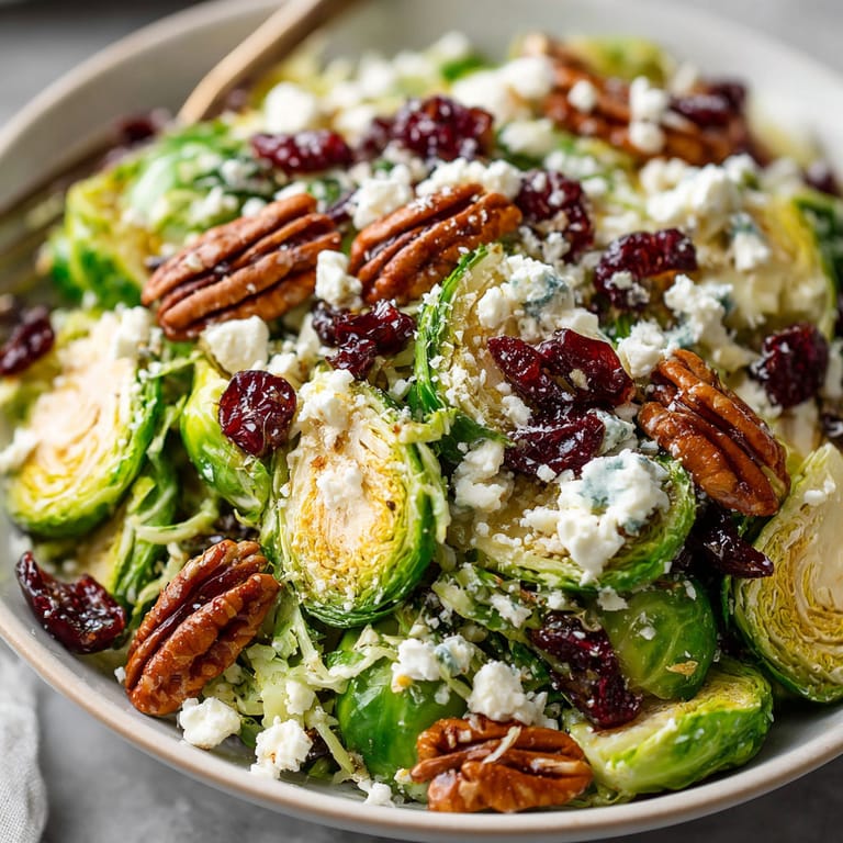 Save to Pinterest This crunchy autumn salad bursts with bright tangy flavor from feta cheese and sweet dried cranberries while toasted walnuts bring satisfying texture. When I need a quick side that impresses guests and cleans out the produce drawer I reach for this brussels sprout salad.