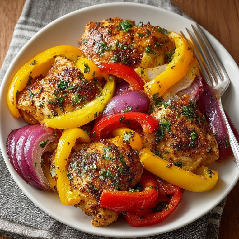 You can use chicken breast or drumsticks in place of thighs. Adjust cooking time so they stay juicy. Swap in zucchini broccoli or carrots if you are low on peppers and onions. The Cajun seasoning works with nearly any combo.