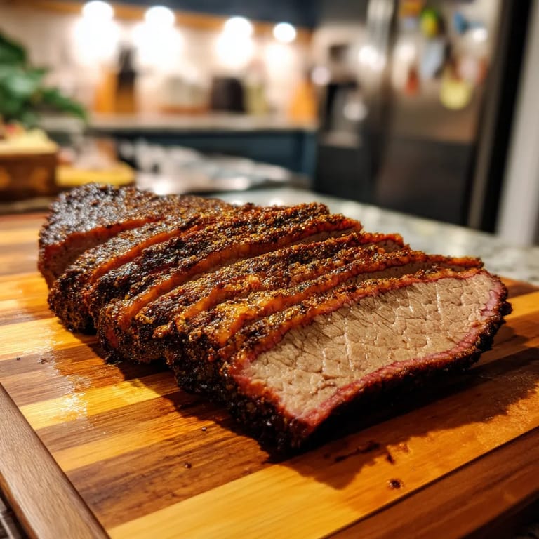 Save to Pinterest The black pepper in this recipe is the real star. I source freshly cracked peppercorns from a local spice shop and grind them coarsely just before seasoning. The difference in aromatics and flavor compared to pre-ground pepper is remarkable. My uncle visiting from Austin said this attention to the pepper was what made my brisket taste like authentic Texas BBQ.