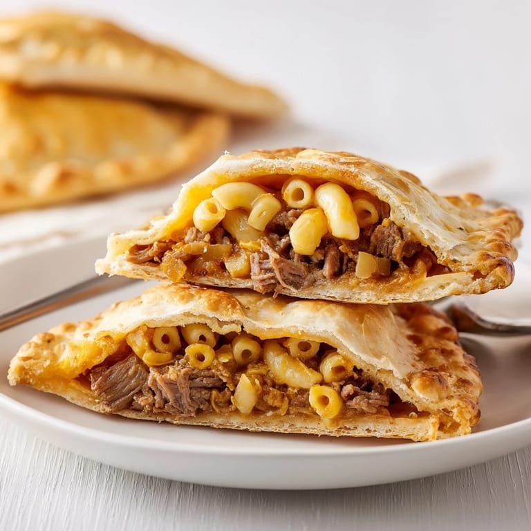 Save to Pinterest A decadent fusion of tender smoked brisket and creamy macaroni and cheese, wrapped in a golden, flaky pastry perfect as a hearty appetizer or a show-stopping comfort food snack.