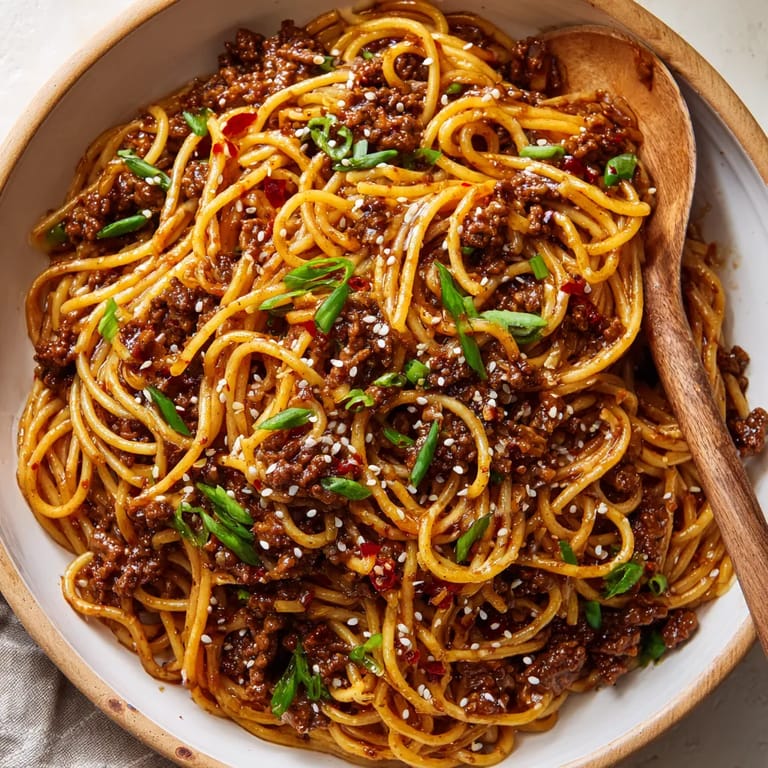 - Divide the beefy noodles among bowls while they are piping hot. Sprinkle with additional green onions and a shower of sesame seeds if you like extra crunch and color. Serve right away for best flavor.