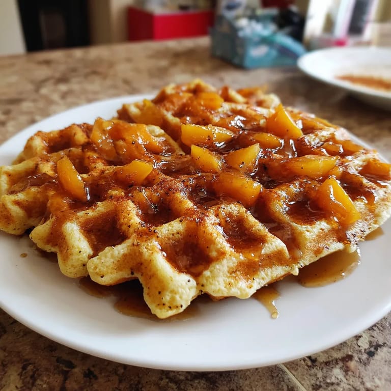 Save to Pinterest Swicy Peach-Habanero Cornbread Waffles are my family’s favorite when we want something a little daring for brunch or dessert. Plump peaches and a golden crumb meet a sweet spicy syrup that always wakes up a brunch table. When that maple-habanero syrup hits hot waffles, you know it is going to be a memorable morning.