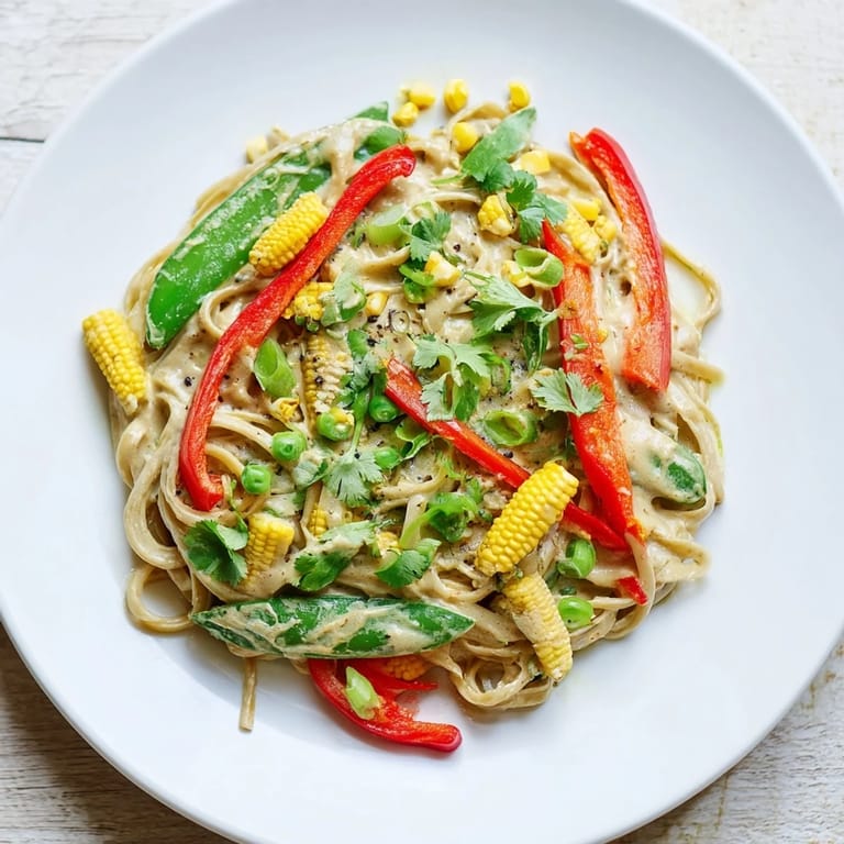 The beauty of this recipe is that it's forgiving enough to adapt to whatever's in your fridge or what you're craving that day. I've made it with broccoli and carrots when the farmers market didn't have peppers, with extra ginger when I was fighting a cold, and even added a handful of spinach the time I was trying to sneak vegetables into a meal for someone particular. You could poach an egg into it, stir in some tofu for texture, or use rice noodles instead of pasta if that's what you have. The curry sauce is the backbone, and everything else is just conversation.
