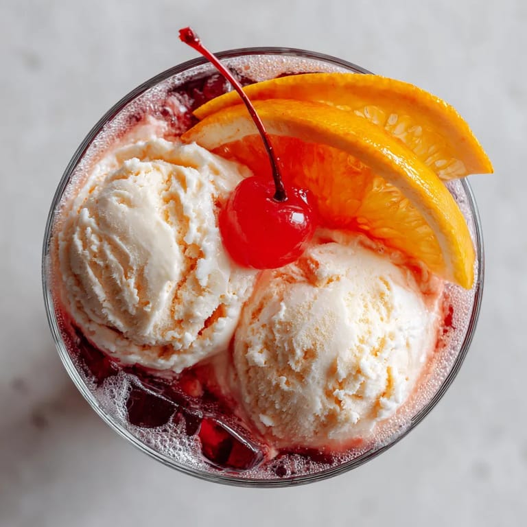 - Top each float with a maraschino cherry and a fresh slice of orange if you want for extra color and a hit of fruit Serve straightaway with a straw and long spoon for maximum fun