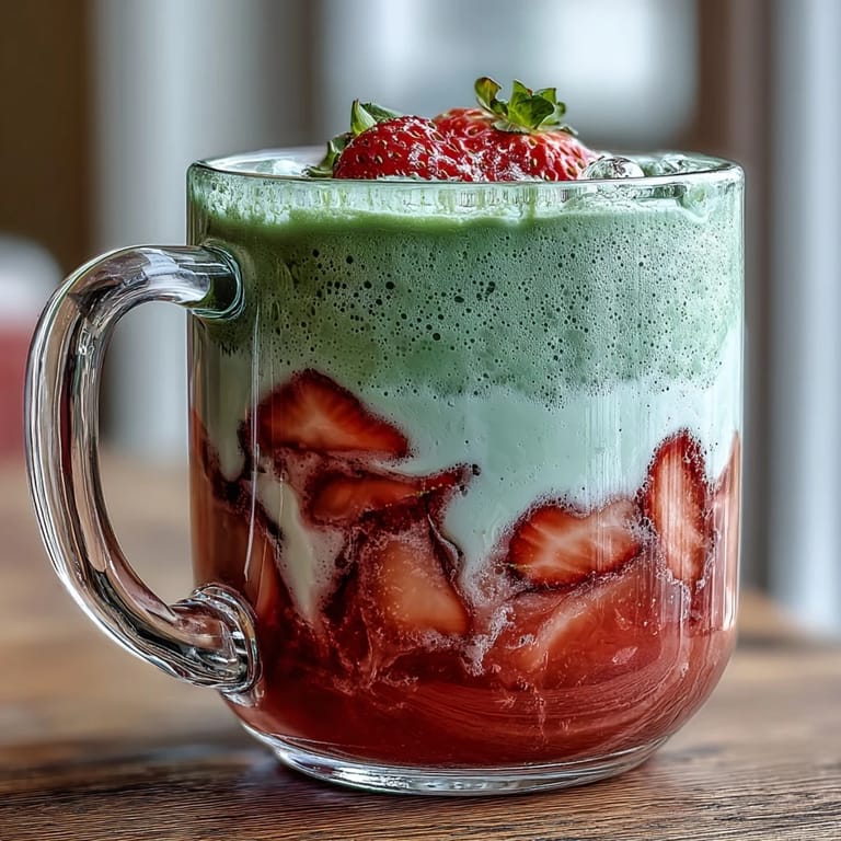 Save to Pinterest The magic of this latte lies in its layers. A ruby-red strawberry purée sits at the base of each mug, sweet and slightly syrupy from a quick simmer on the stovetop. Over that, a cloud of hot frothed milk billows gently, and finally, a pour of whisked matcha drifts across the surface in a wave of deep green. The result is a drink that is as pleasing to the eye as it is to the palate — a fusion of Japanese tea tradition and the simple joy of fresh strawberries.