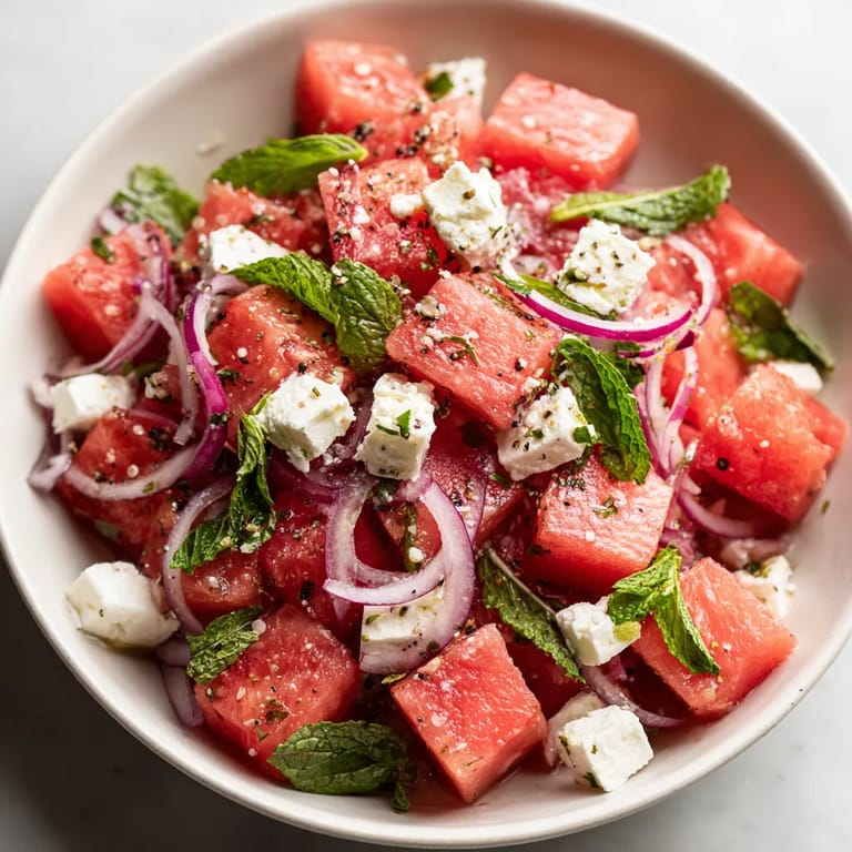 I first tossed this together for a sunny afternoon barbecue and it was gone in minutes My family always asks for it now as soon as we bring home a juicy watermelon