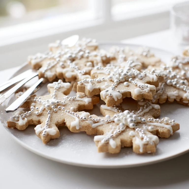 Save to Pinterest An enchanting platter of delicate, snowflake-shaped cookies and sweet treats, perfect for festive gatherings or a cozy winter afternoon.