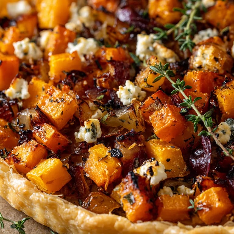 Save to Pinterest This savory butternut squash and goat cheese tart brings together sweet caramelized squash and tangy goat cheese atop a flaky puff pastry. It makes any holiday table more special but is simple enough to whip up for a light lunch or to impress unexpected guests. The rich flavor, vibrant colors, and buttery crust always get rave reviews in my kitchen.