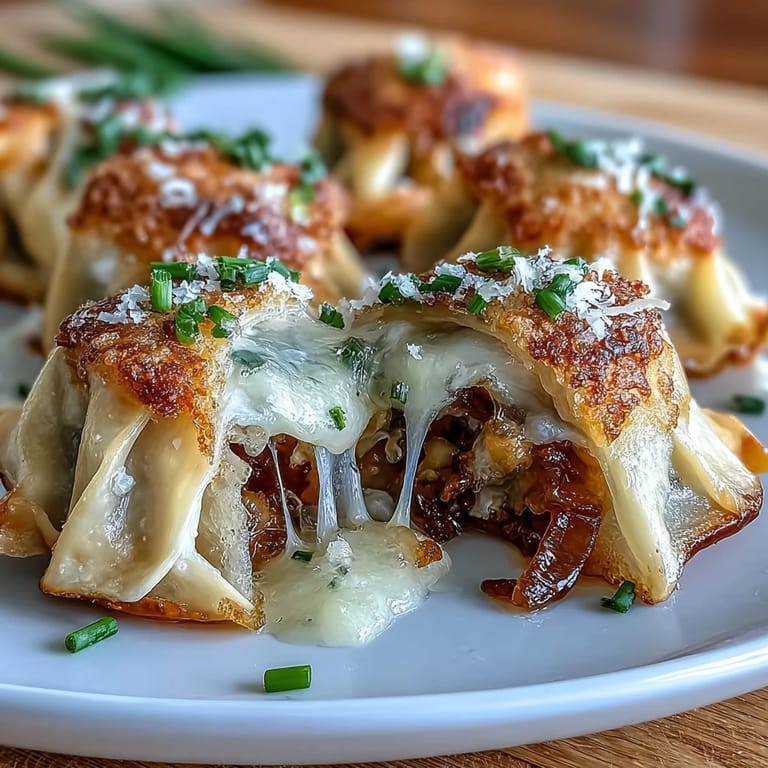 Save to Pinterest I stumbled onto these dumplings by accident, honestly. My partner brought home a container of leftover French onion soup from a dinner party, and I'd just bought dumpling wrappers for something else entirely. Standing at my kitchen counter with both in front of me, something clicked—why not combine them? That first batch was messy and imperfect, but biting into that crispy-bottomed pocket of caramelized onions and melted Gruyère felt like discovering a secret.